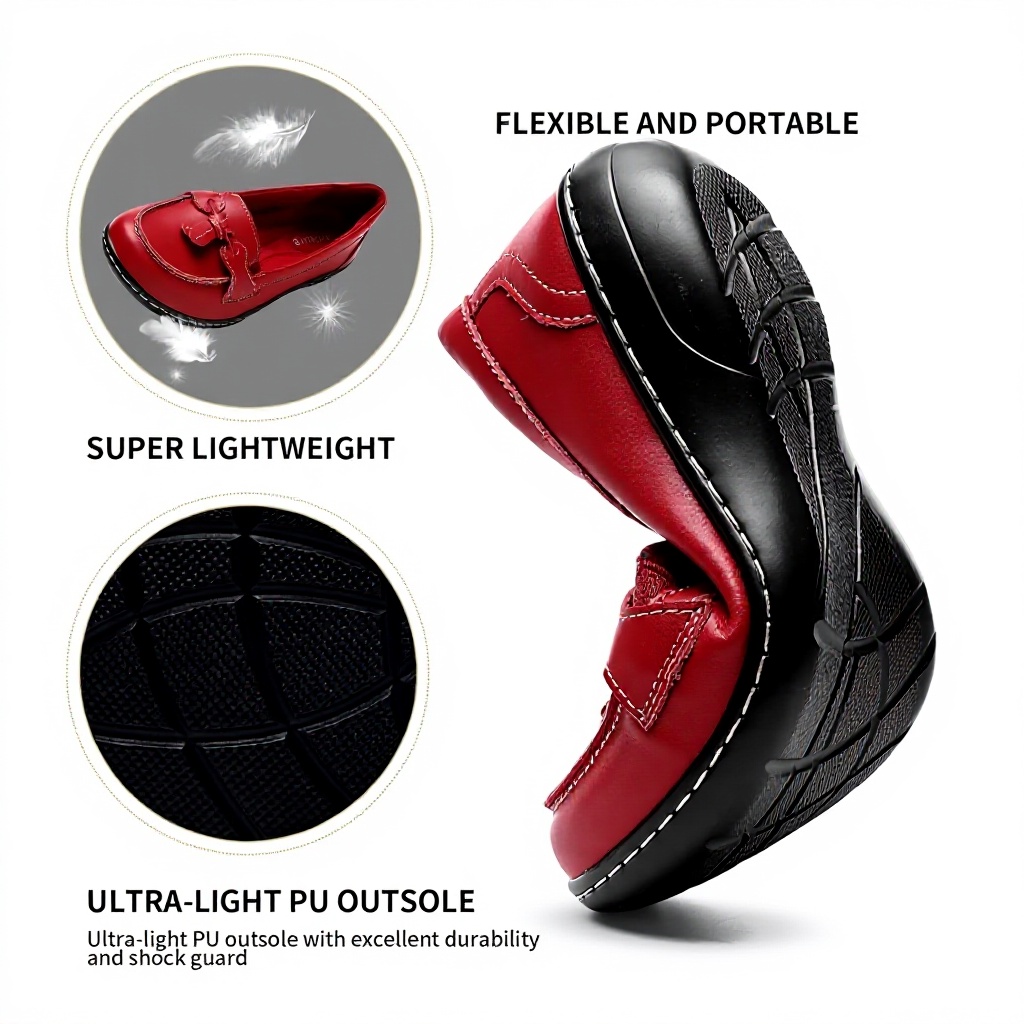 Artisure women’s classic penny loafers combine genuine leather construction with comfortable memory foam insoles for all-day wear. The slip-on design with tassel decoration offers both style and convenience, making these flats perfect for office wear, casual outings, and driving. Available in multiple colors including blue, red, and metallic champagne to match any wardrobe.