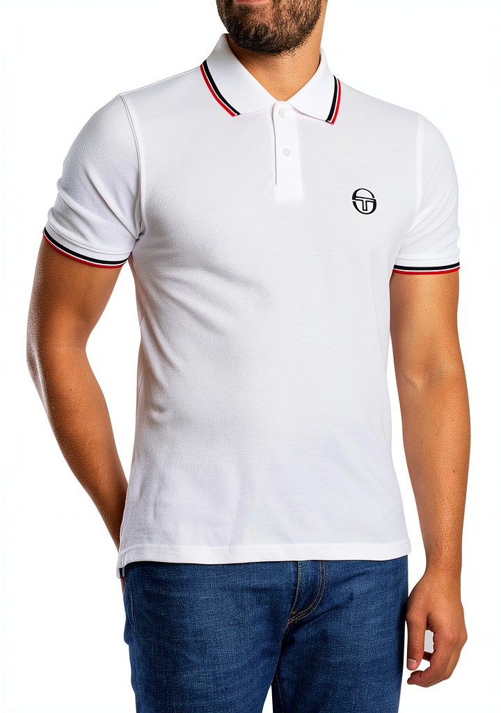 Sergio Tacchini Mens Polo Shirt Stripe Collar White Black